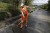 Vergato (Bo). Un tecnico dell'Anas provvede alla pulizia del manto stradale della statale Porrettana dopo l'esondazione del Reno, causata delle forti piogge