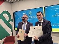 Firma nuovo Accordo di collaborazione tra la Regione Emilia-Romagna e la Repubblica di San Marino. Presidente della Regione Michele de Pascale e segretario di Stato per gli Affari Esteri Luca Beccari, alla guida della delegazione sammarinese.