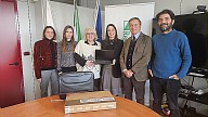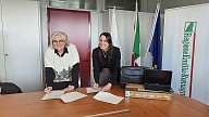 L'assessora regionale all’Agenda digitale, Legalità e Contrasto alle povertà, Elena Mazzoni, consegna alla presidente del Tribunale per i Minorenni dell’Emilia-Romagna, dott.ssa Gabriella Tomai 28 dispositivi informatici